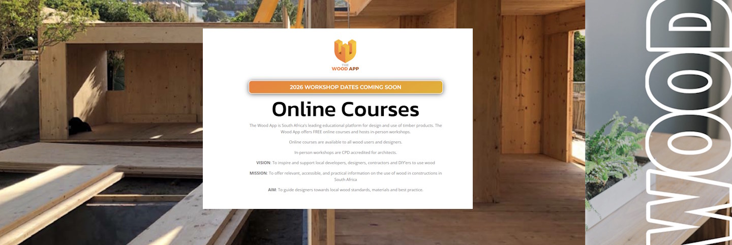 Workshop dates for 2026 will be announced soon and will again include events such as Timber Frame Building, Mass Timber Building and Integrating Sustainability into Design using Wood, in and around South Africa’s major cities.